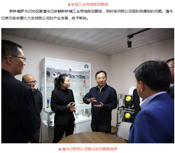 2019年11月25日下午,路橋區委書記潘建華在區各部門領導和新橋鎮羅書記及張鎮長的陪同下蒞臨我公司進行調研指導。